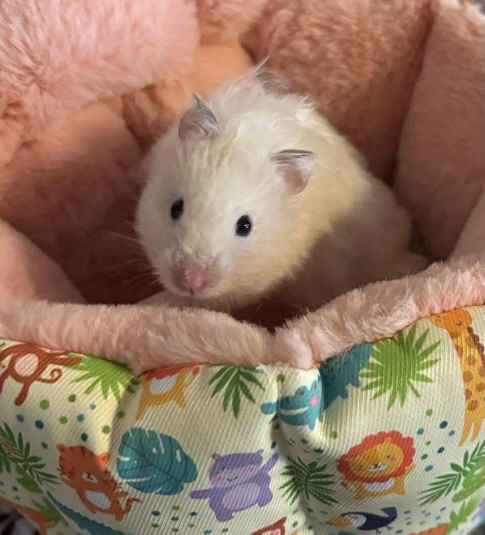 Peaches is a precious young female Syrian hamster. She is friendly and curious and doesn’t mind being held. She would do well in a beginner hamster home or home with respectful children.